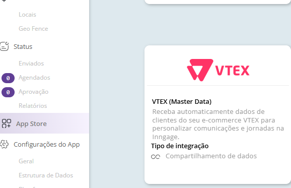 1. Acesse a App Store dentro da Inngage → selecione VTEX (Master Data).