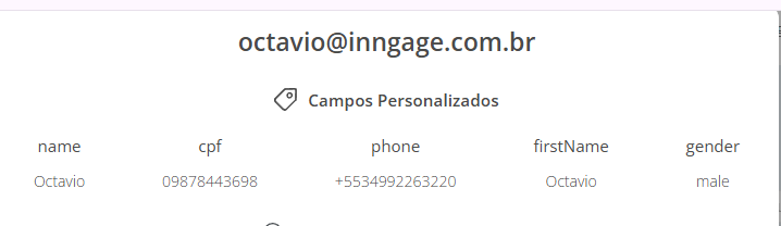 3. Os campos configurados no mapeamento são retornados e utilizados para atualizar ou enriquecer o perfil do usuário na Inngage.