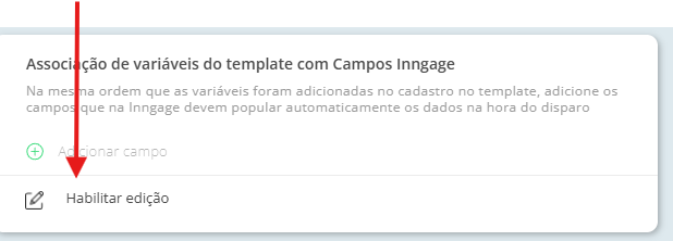 Depois você irá associar as variáveis do template com os Campos Inngage: