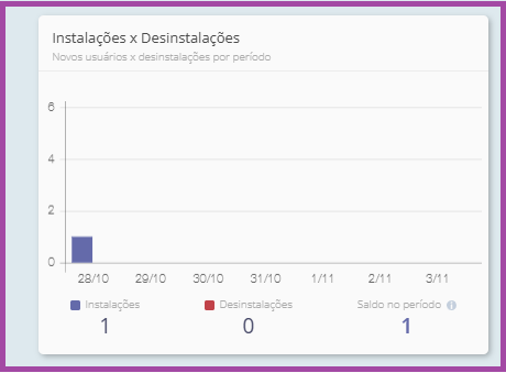 Esse gráfico traz a visão de quantas instalações e desinstalações ocorreram no aplicativo dentro do período filtrado.