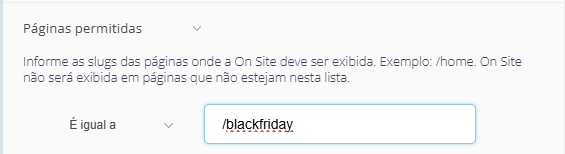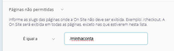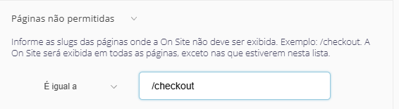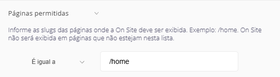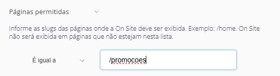 O que faz: Define exatamente em quais páginas a On Site pode ser exibida.