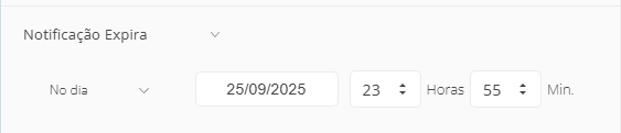- Em Campanhas → Notificação Expira: