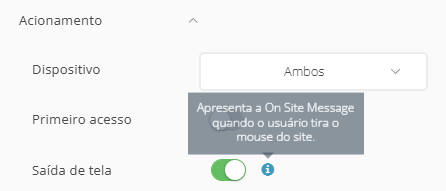 As regras de acionamento definem quando e como a On Site será exibida para o usuário.