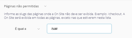 O que faz: Define as páginas onde a On Site não deve aparecer.