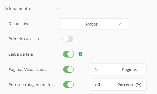 - Em Campanhas → Acionamento: