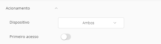 - Em Campanhas → Acionamento → Ligar Flag de "Primeiro Acesso":
