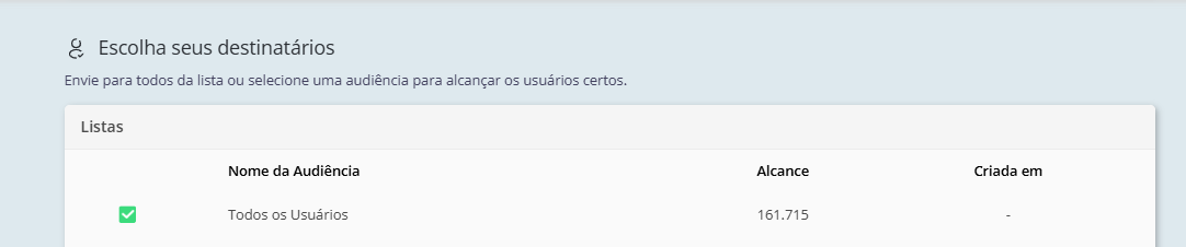 - Escolha da base: Todos os usuários ou uma segmentação desejada: