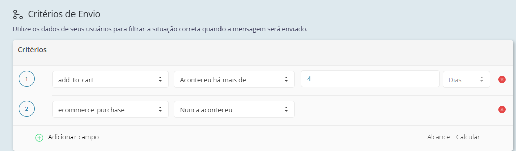 - Criação: igual a uma automação comum → basta selecionar audiência + critério desejado.