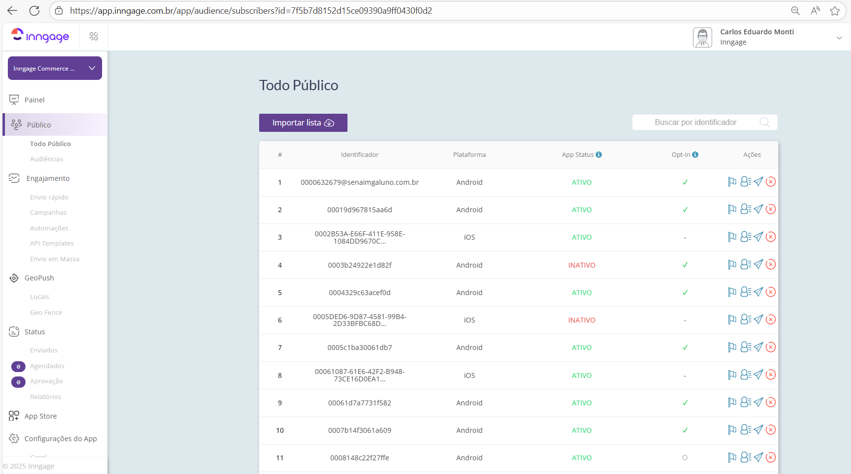 A exclusão manual de usuários é uma funcionalidade poderosa que garante controle total sobre sua base de audiência na plataforma Inngage. Seja para manter sua lista organizada ou atender a necessidades específicas, este recurso permite que você remova identificadores de forma simples e eficiente.