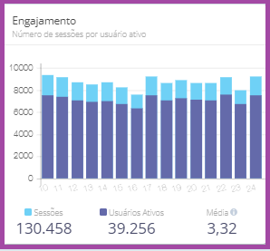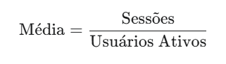 Média de Sessões por Usuário: Um indicador de retenção/engajamento, calculado pela divisão do Total de Sessões pelo Total de Usuários Ativos no período.
