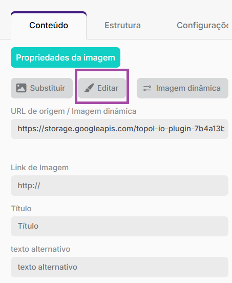 Você pode usar nosso editor de imagens integrado para editar qualquer imagem em seu modelo a qualquer momento. Basta clicar na imagem que deseja editar e, em seguida, clicar no botão Editar na parte superior da guia Propriedades da imagem na seção esquerda.