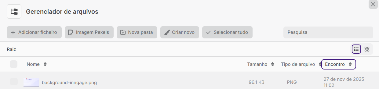 O Gerenciador de Arquivos serve como um hub central para suas imagens favoritas, permitindo que você selecione, armazene e organize as imagens que você usa frequentemente em seus modelos.