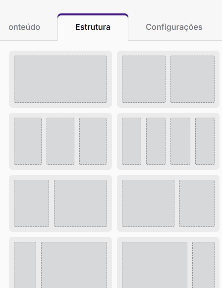 A principal distinção entre as estruturas é o número de colunas que elas apresentam, que pode variar de uma a quatro. Para modificar seu modelo, basta clicar na aba " estrutura ", selecionar o tipo de estrutura desejado e arrastá-lo para o modelo onde você deseja.