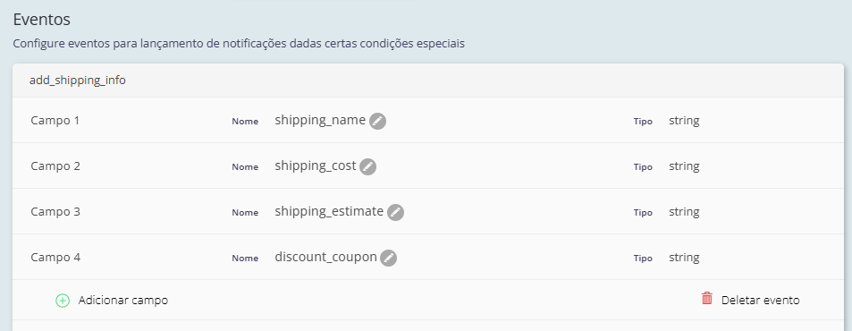 Esses eventos precisam estar previamente cadastrados para que os dados enviados pelo site sejam reconhecidos e armazenados corretamente pela plataforma.