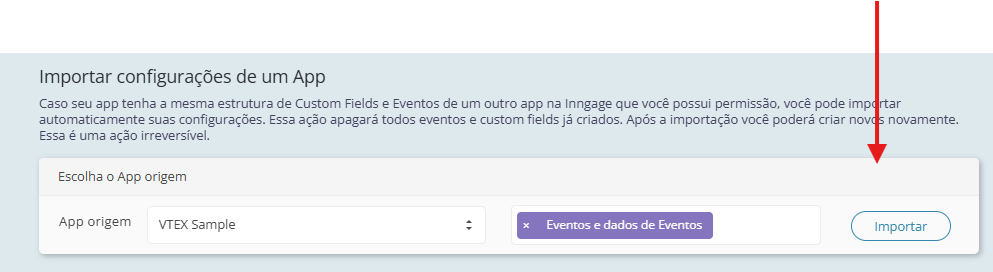 Escolha VTEX Sample e importe os dados de Eventos e dados de Eventos depois só clicar em Importar