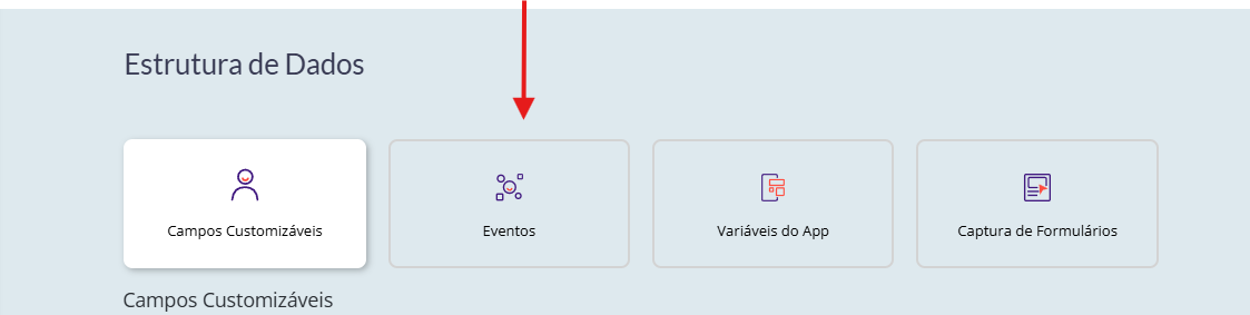 Configurações do App → Estrutura de Dados → Eventos → Novo Evento